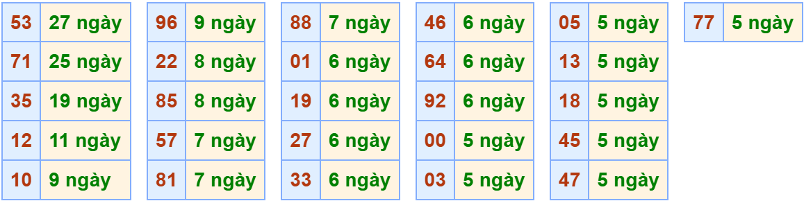 – Đầu loto về nhiều nhất: 5 6 (xuất hiện 5 lần)