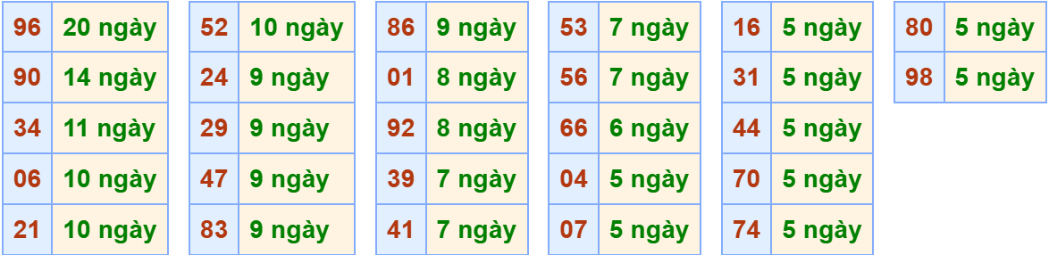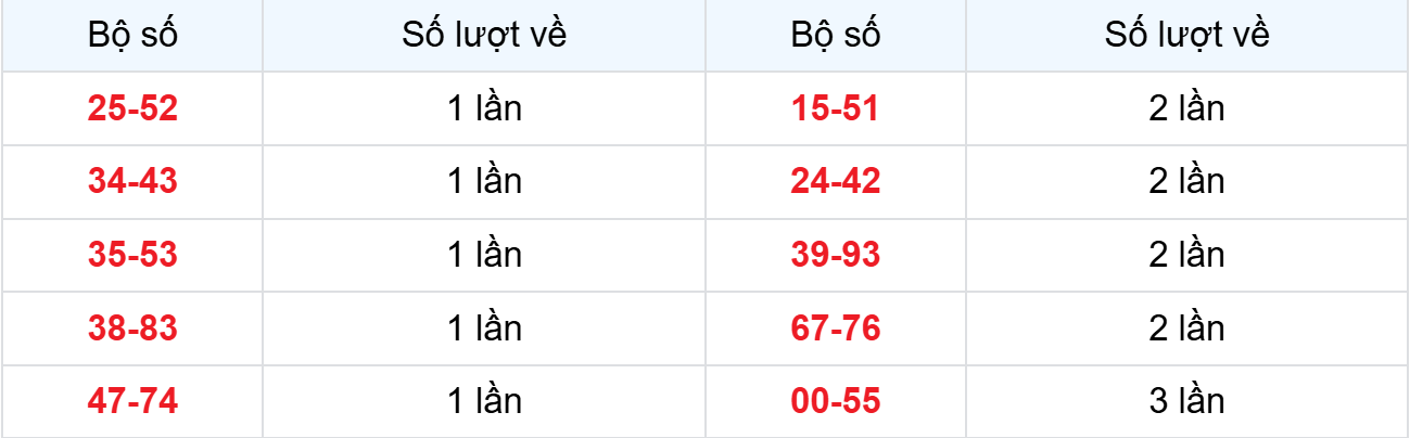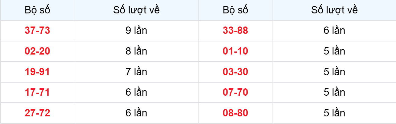Các cặp lô về ít nhất từ 10-04-2026 đến 16-04-2026