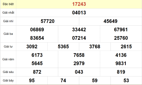 – Giải đặc biệt: 43