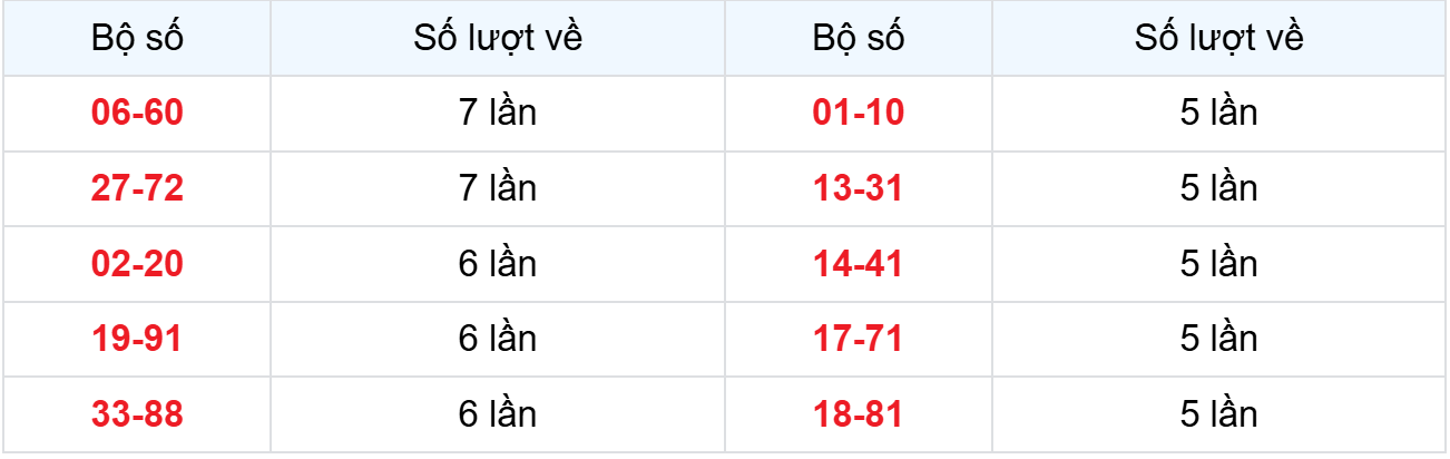 – Đầu loto về nhiều nhất: 1 (xuất hiện 5 lần)