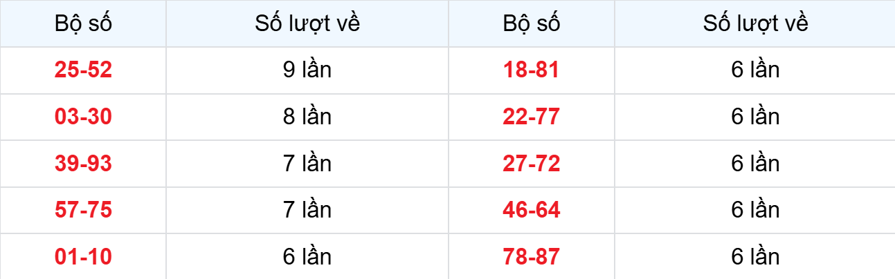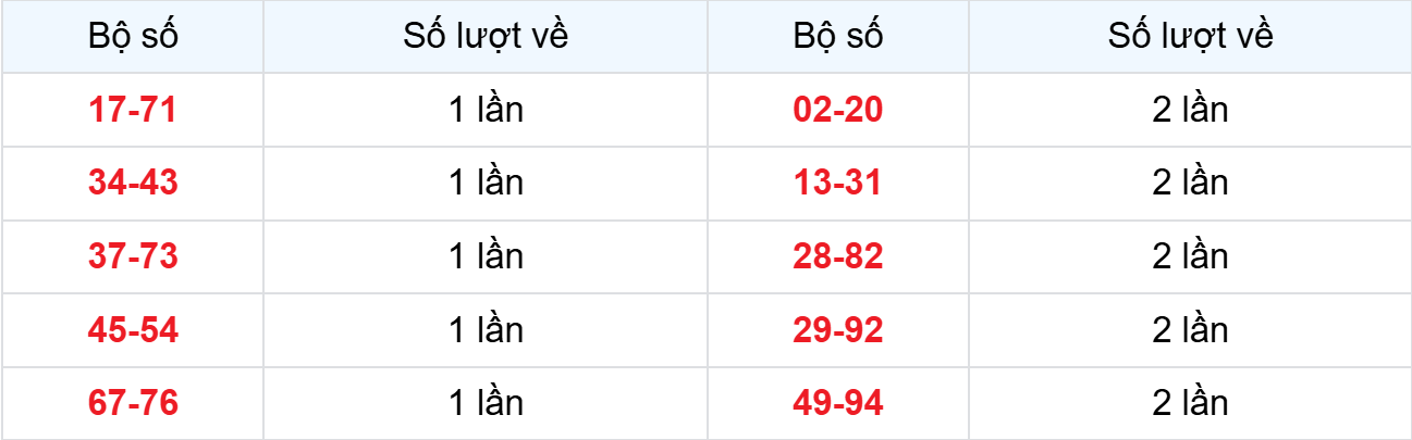 Các cặp lô về ít nhất từ 14-03-2026 đến 20-03-2026