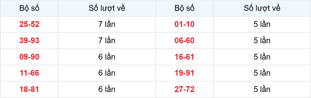 – Đầu loto về nhiều nhất: 2 + 5 (xuất hiện 5 lần)