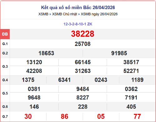 Thống Kê Kết Quả Xổ Số Miền Bắc Ngày 26/04/2026